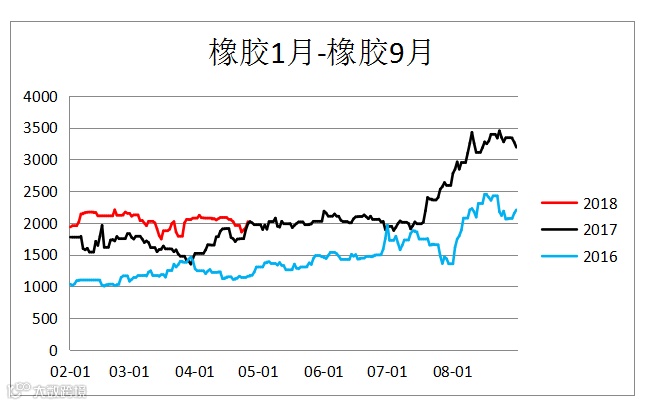 天然橡胶跨期价差(RU1901– RU1809)小幅震荡
