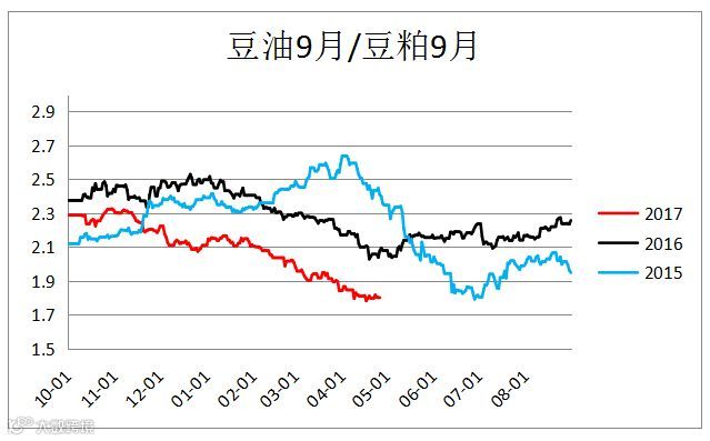 油粕比(Y1809/ M1809, OI1809 / RM1809)震荡,建议观望。