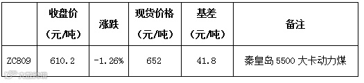 上周五动力煤主力合约ZC809开盘于619元/吨,最高621元/吨,最低610元/吨,报收于610.2元/吨。较前一交易日下跌7.8元/吨。