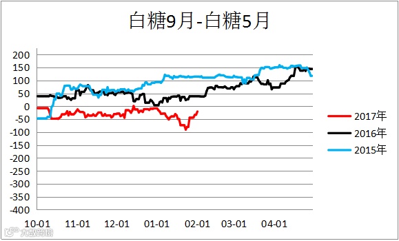 白糖跨期价差(SR1809– SR1805)震荡反弹,建议观望。
