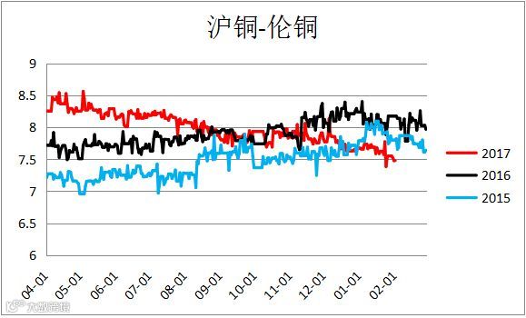 沪铜伦铜比区间震荡。