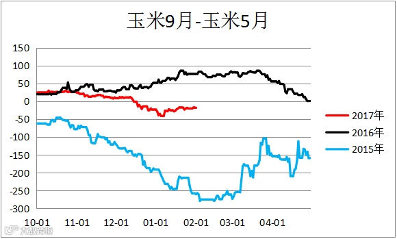 玉米跨期价差(C1809– C1805)小幅震荡。