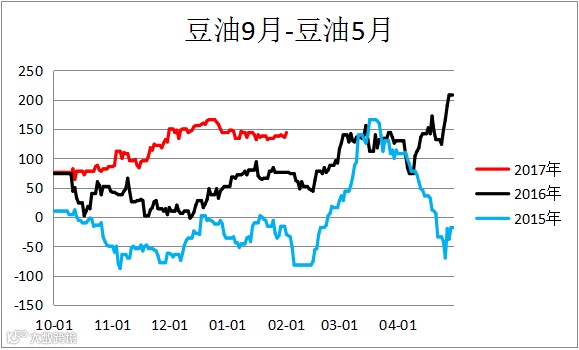 大豆跨期价差(A1809– A1805)震荡偏强。