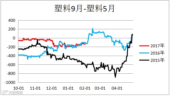 塑料聚丙烯价差(L1805– PP1805)小幅震荡,未来行情有待观望。