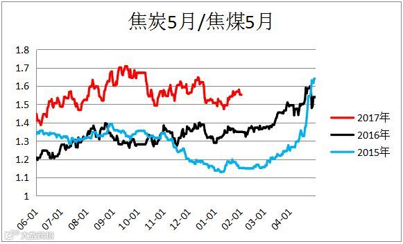 焦炭焦煤价比(J1805/ JM1805)震荡偏强,建议观望。