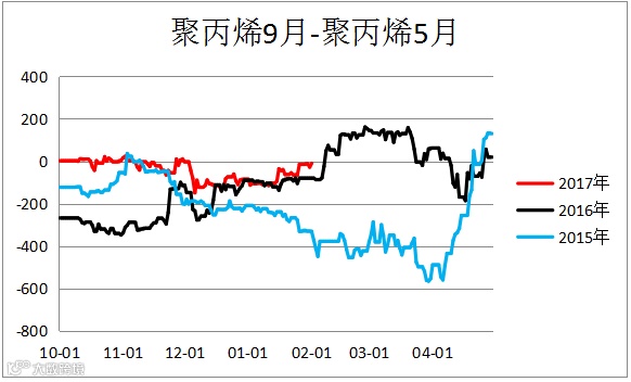 聚丙烯跨期价差(PP1809 – PP1805)震荡偏强。