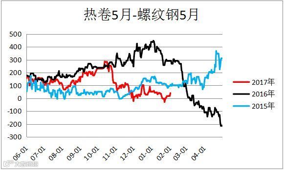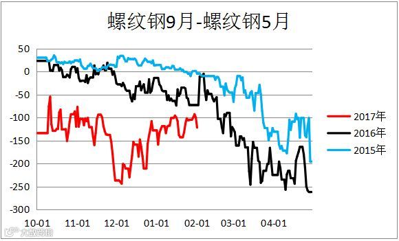 螺纹钢跨期价差(RB1809 – RB1805)剧烈震荡,建议观望。