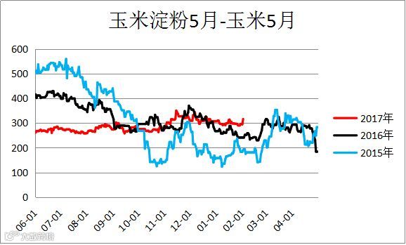 玉米淀粉玉米价差(CS1805 – C1805)震荡。