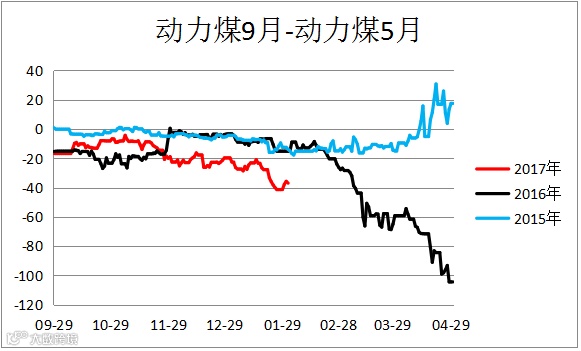 动力煤跨期价差(ZC1809 – ZC1805)震荡,建议观望。