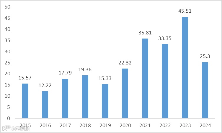 股东应占溢利同比下降44.40%至25.30亿港元,低于2021-2023年同期,但显著高于2015-2020年间平均水平。