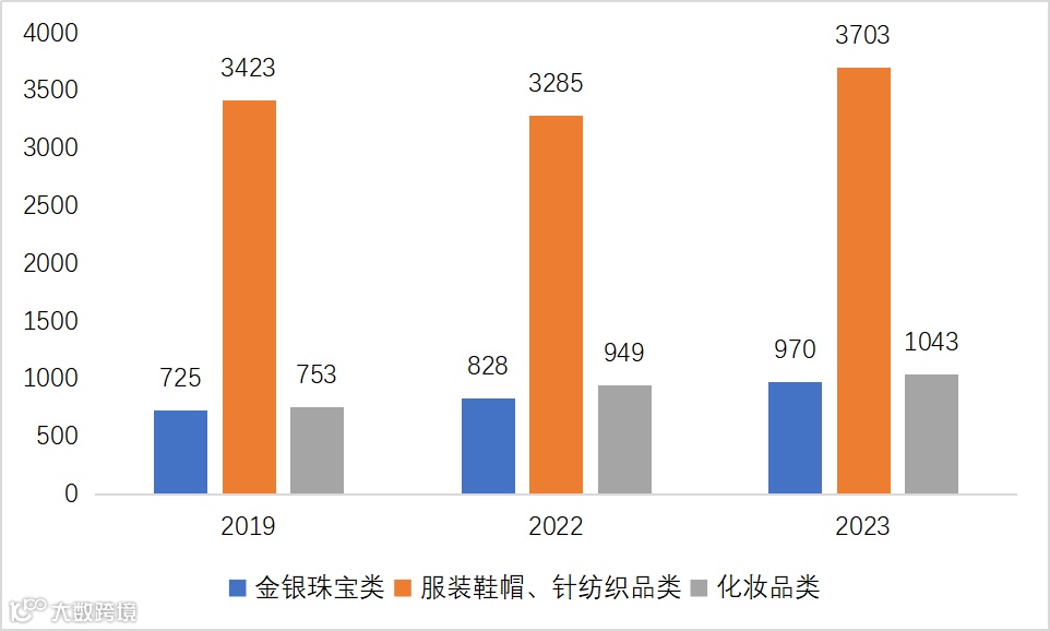 珠宝行业方面 ,今年以来市场持续呈现出显著复苏的态势。3月,限额以上单位金银珠宝类商品零售总额288亿元,同比增长37.4%,成为该月唯一同比增幅超过20%的商品类别;一季度,限额以上单位金银珠宝类商品零售总额同比增长13.6%至970亿元,同比增幅位列第二,仅低于中西药品类,较2019年同期名义增长33.8%。
