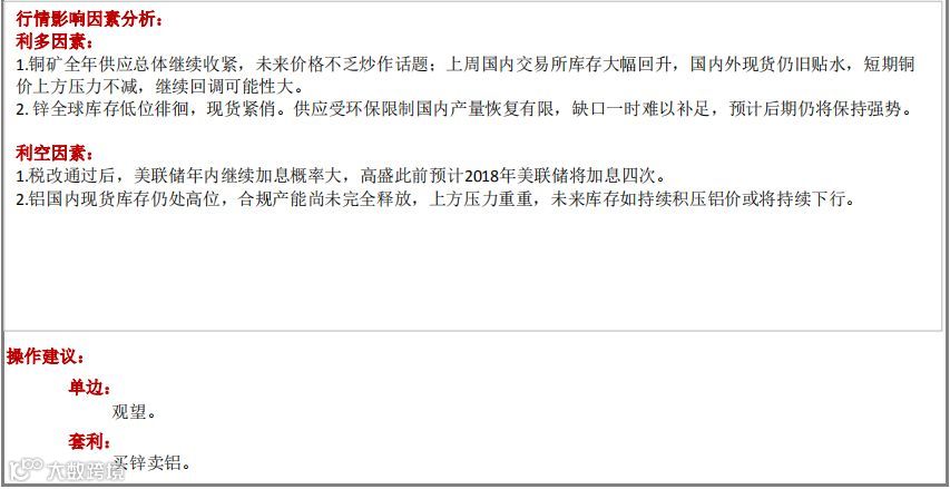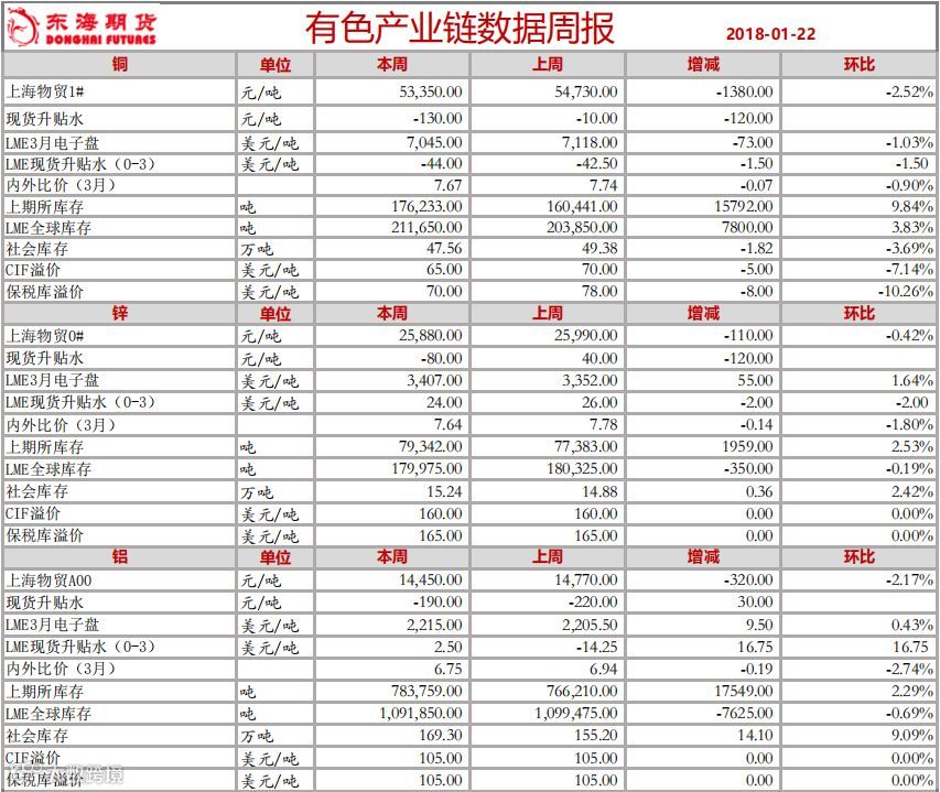 有色产业链数据周报(2018.01.22)