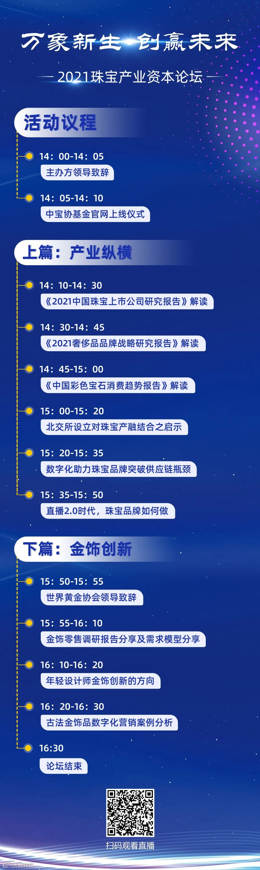 本次“万象新生•创赢未来——2021珠宝产业资本论坛”由中国珠宝玉石首饰行业协会、自然资源部珠宝玉石首饰管理中心(国家珠宝玉石质量监督检验中心)、世界黄金协会指导,中宝协(北京)基金管理有限公司、星河控股集团有限公司主办,三亚观逸时尚产业发展有限公司承办,华泰联合证券有限责任公司、杭州优时软件有限公司、北京懋隆国际艺术品贸易有限公司、北京分果果科技有限公司共同协办。