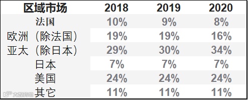 ▲LVMH集团不同市场收入分布