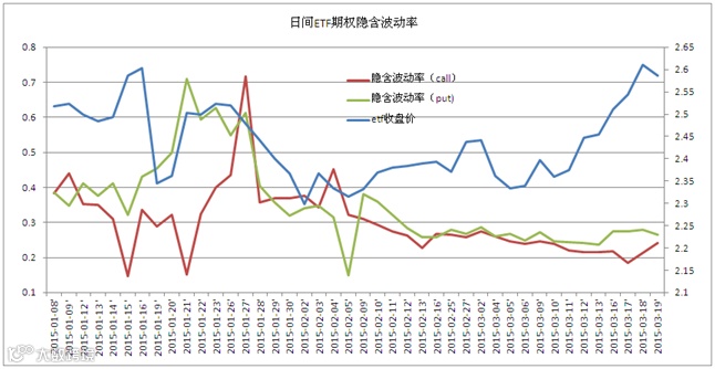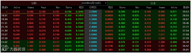 上个交易日,3月份认沽期权合约隐含波动率无规律,主力合约隐含波动率从前日的极低(不到8%)飙升至今日的极高(58%),而对应的认沽期权的隐含波动率出现了明显的下降。我们认为,与前几个交易日认购期权极低的隐含波动率类似,做市商为了保证delta中金而做出的操作使得在市场下跌时3月份认购合约波动率出现异常。由于预计大盘将进入短期的调整期,投资者可以卖出50ETF购3月2200买入50ETF沽3月2200。与3月份合约不同的是,4月份主力合约50ETF购4月2200隐含波动率极低。4月份合约隐含波动率呈现一定规律,认购期权合约呈现右高左低形态,认沽期权呈现左高右低形态,投资者倾向于购买高杠杆的虚值合约,认购合约用于投机,认沽合约用于保护。