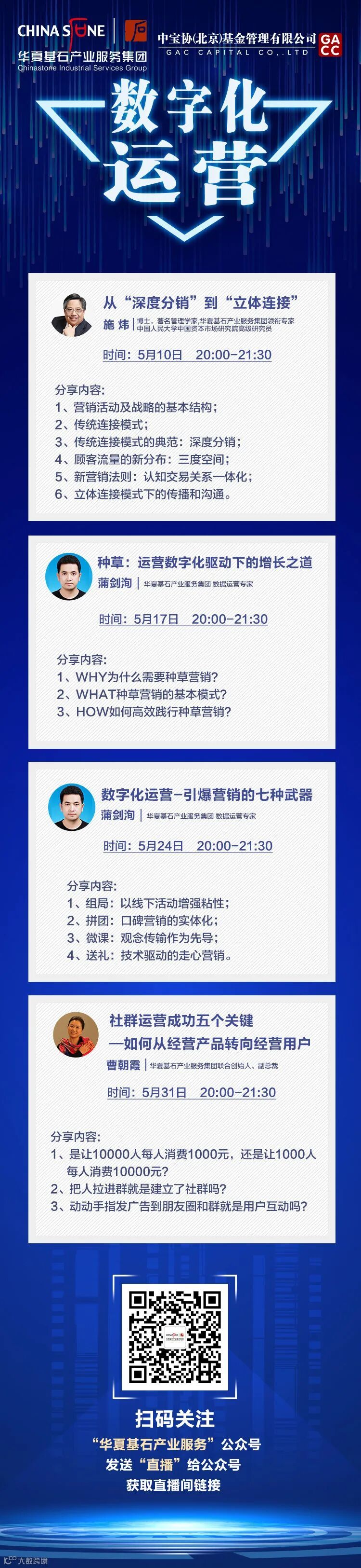5月直播课程继续,将推出数字化运营系列课程。本系列课程共4期,精彩分析,不容错过!
