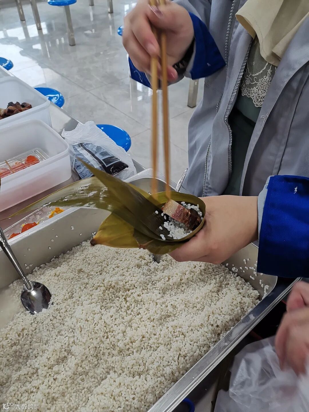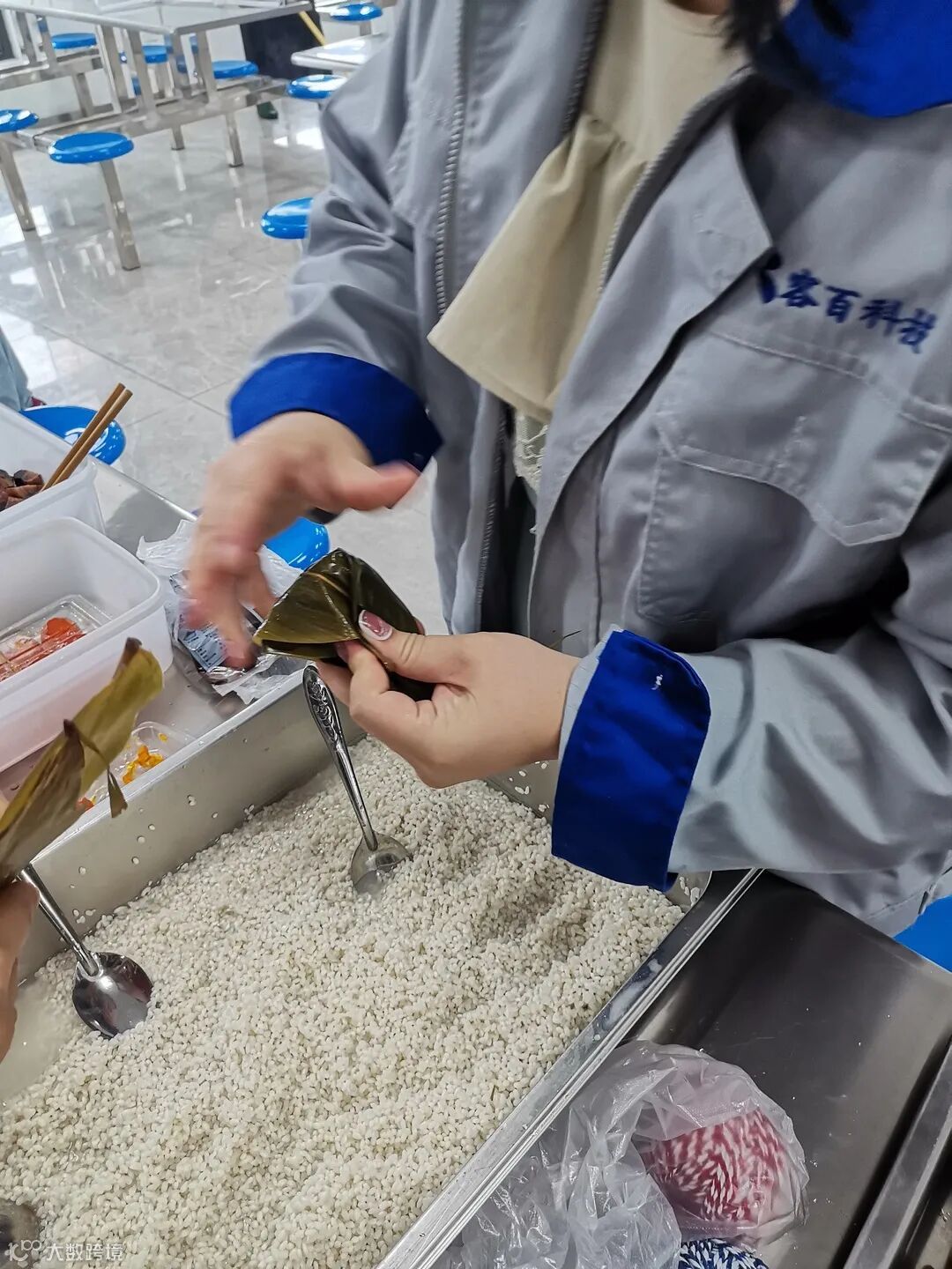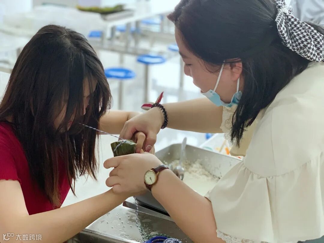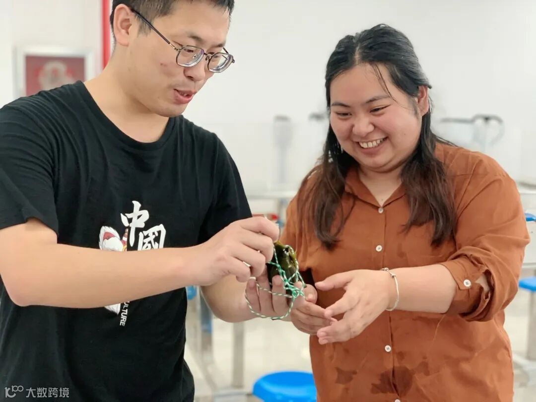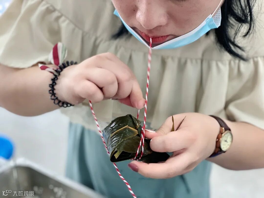 生产部李文思教大家包粽子