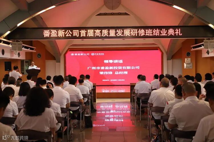 10月17日下午,为期一年多的番盈新公司首届高质量发展研修班顺利落下帷幕。中房商学院院长汪力、番盈新公司总经理梁伟锋,番盈新公司及属下各公司全体员工共约200人参加结业典礼。