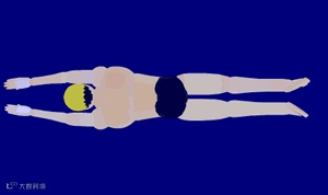 3、身体始终保持伸展、正直、几乎水平地仰卧于水面,好像平躺在床上,头下有一只矮枕头。