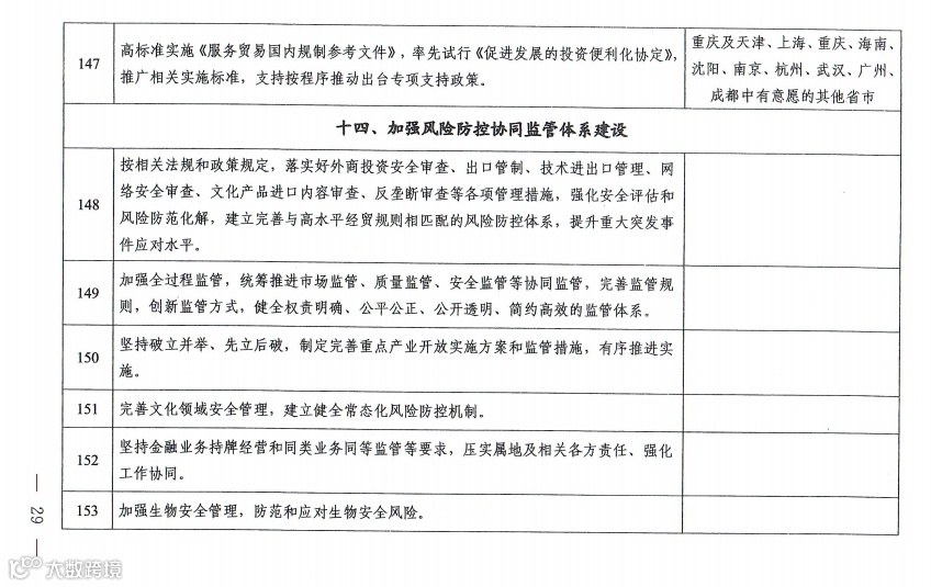 四是在加强风险防控协同监管体系建设方面,坚持破立并举、先立后破,制定完善重点产业开放实施方案和监管措施,有序推进实施。