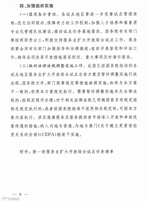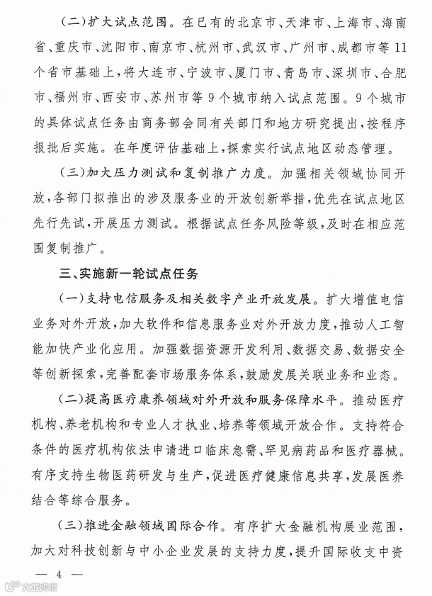 商务部印发《关于加快推进服务业扩大开放综合试点工作方案》的通知