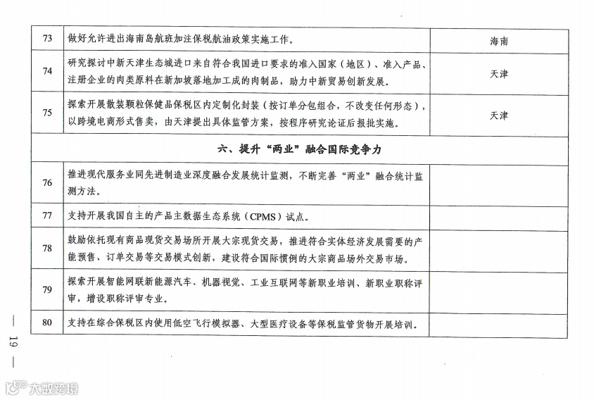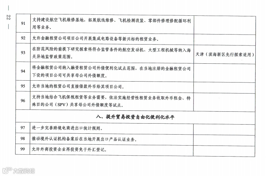 在商贸文旅领域,允许外商投资旅行社经营出境旅游业务;在天津支持试点传统经典车保税展示及托管业务;在海南支持博鳌乐城国际医疗旅游先行区开展进口使用特医食品、保健食品先行先试。