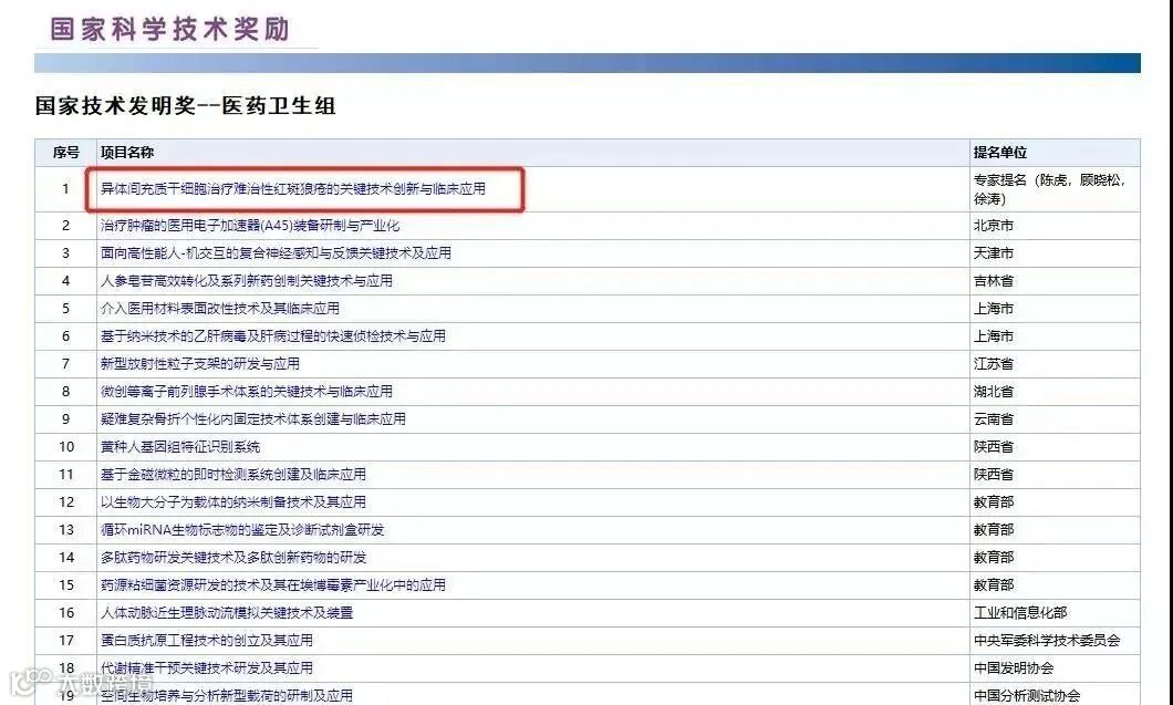 2019年,间充质干细胞治疗难治性红斑狼疮的相关项目顺利通过国家科学技术奖初评且建议等级为二等奖。2020年6月,间充质干细胞治疗系统性红斑狼疮的新药临床试验申请获得国家药品审评中心受理,采用的是围产组织来源的间充质干细胞。