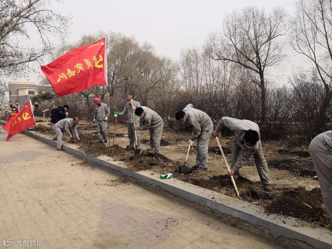 五月,我们美化环境,种植树木、清理杂草。