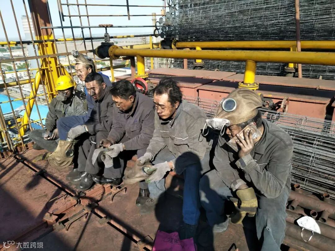 现场的工人都戴着防风眼镜和防尘口罩,可20多摄氏度的高温加上高强度的工作量,使戴着面罩的他们并不舒服,面罩里充满了汗水。任凭汗水流进嘴里、眼睛里,他们依然没有停下手上的工作。风吹乱了他们的头发,工作服也是由干到湿在到被风吹干,他们依然在继续工作着,没有一刻的停歇。硬汉形象在阳光的照耀下越显高大!