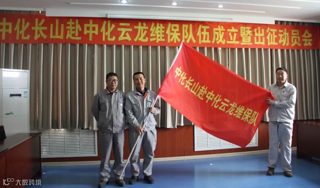 中化长山赴中化云龙维保队伍于2018年5月11日正式成立,授旗仪式上,当公司总经理王力刚把印有“中化长山赴中化云龙维保队”的红旗递交到机械维修厂厂长兼设备工程部副部长徐洪伟的手中时,也是把确保中化云龙检修质量的重任递交到了维保队员的身上。维保队,是在中化长山进行内部改革、人员优化的大背景下诞生的,得益于公司总经理王力刚的积极倡议。它的初衷是实现检维修人员的综合利用,确保中化云龙生产装置的检维修质量。