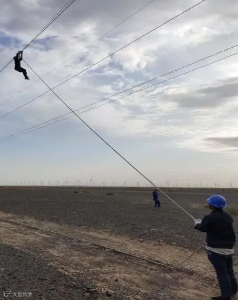 温情的手在电线上奏着欢快的乐章,滚滚沙海风电工人信念坚定,茫茫戈壁夜如白昼顿显辉煌。