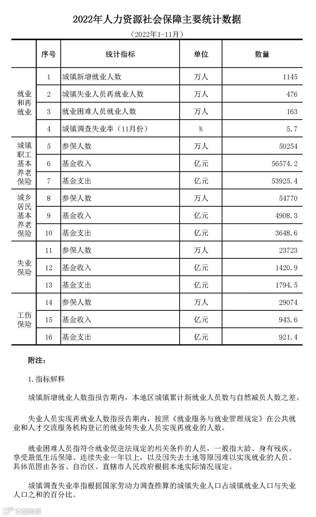 2022年1-11月人社主要统计数据 社保金融发展论坛