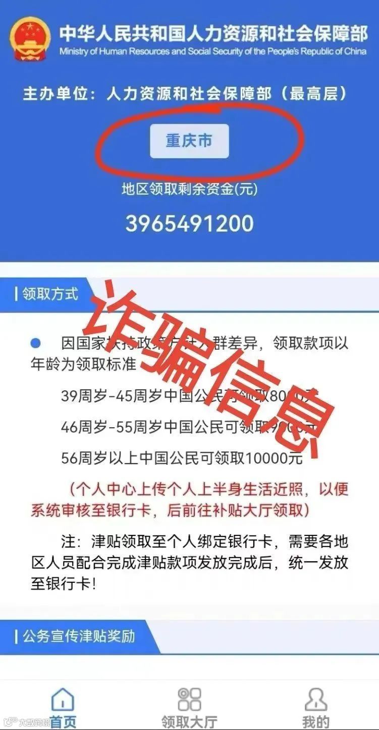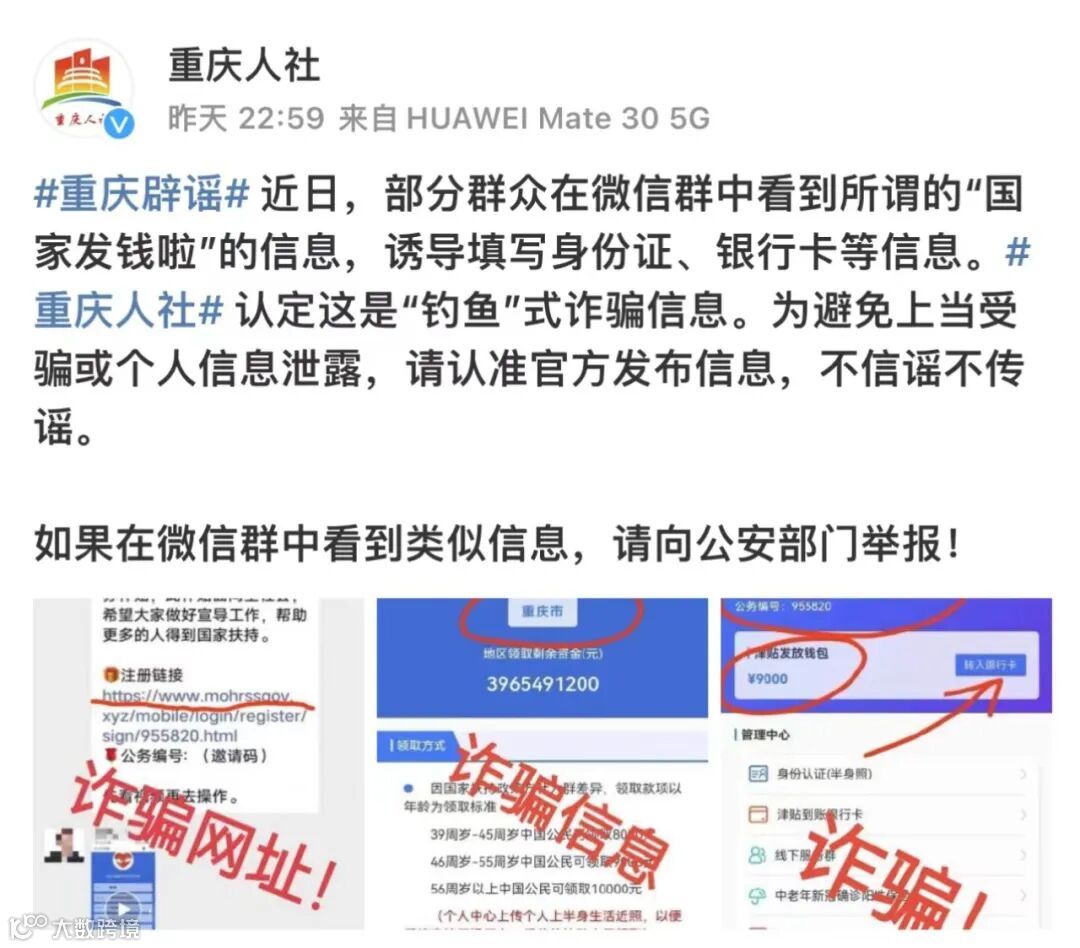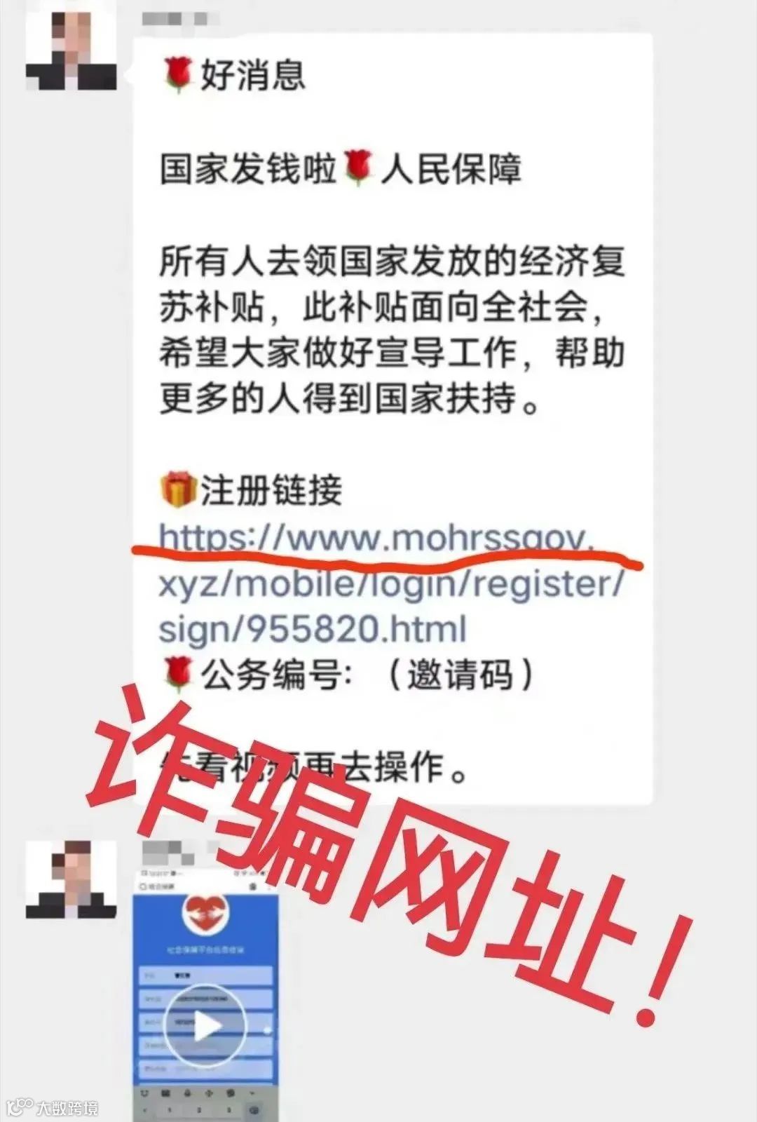 近日,部分群众在微信群看到所谓“国家发钱啦”的信息,注册就能领津贴。