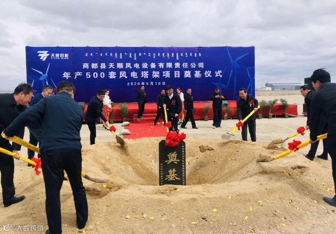 会后,天顺商都年产500套风电塔架项目奠基仪式于项目现场隆重举行。首先,由乌兰察布市政协副主席、商都县县委书记靳前斌致欢迎词。靳书记表示天顺风能集团商都项目,是商都2020年重要的招商引资项目,该项目的投资建设,必将为商都的经济发展注入新的生机和活力,极大带动当地的经济和社会各项事业的深入发展。作为地方政府,将进一步牢固树立企业是加快经济发展核心的理念,协调解决好项目建设过程中的实际问题,全力支持项目建设,推动项目尽早建成投产。