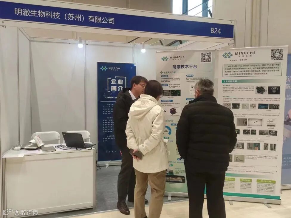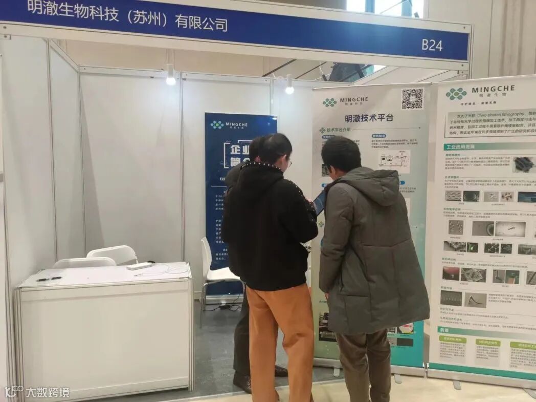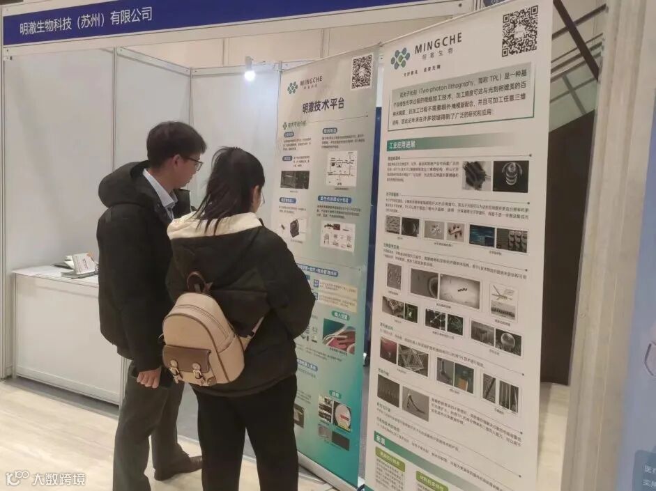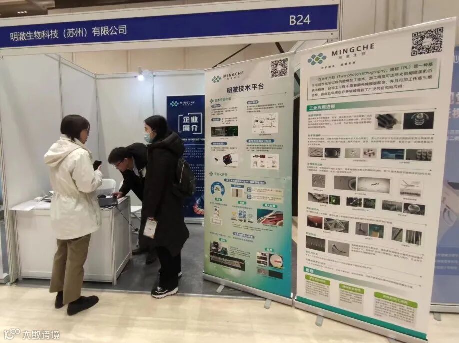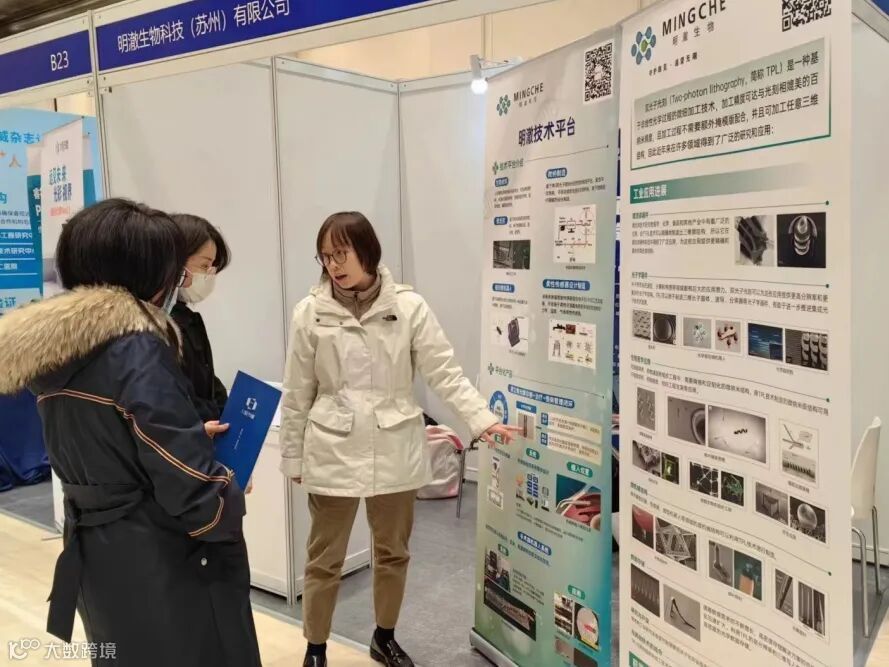 展位上,明澈介绍了本公司目前已经成熟的技术平台及部分在研的平台化产品。明澈研发团队拥有在水凝胶生物材料、微纳 3D打印、微流控等技术基础上进行医疗器械设计和制造的多年经验积累,自主搭建高分子生物材料智能制造及近场控制平台,开发与眼部应用相匹配的微型化治疗及监测器械,如磁控手术机器人平台、眼后节的微针给药平台、传感器平台等。