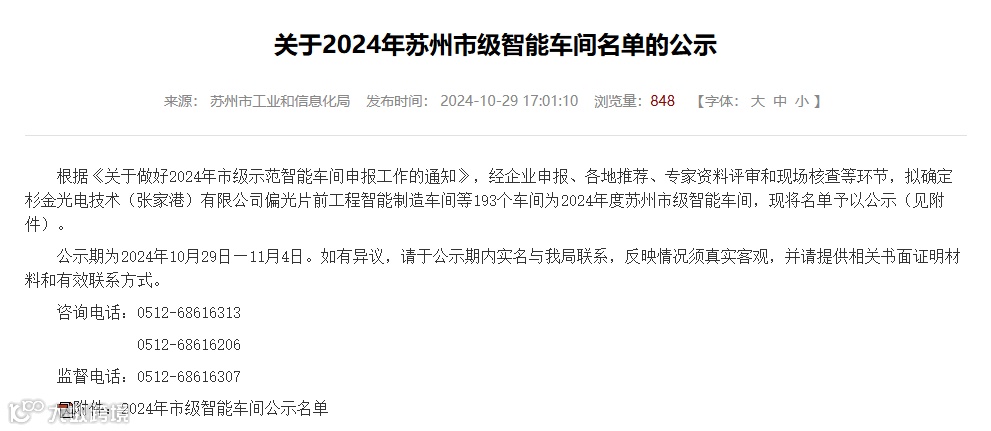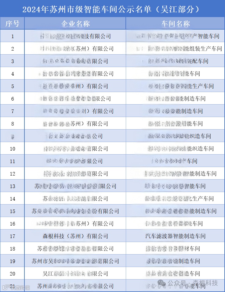 2024年苏州市级智能车间名单