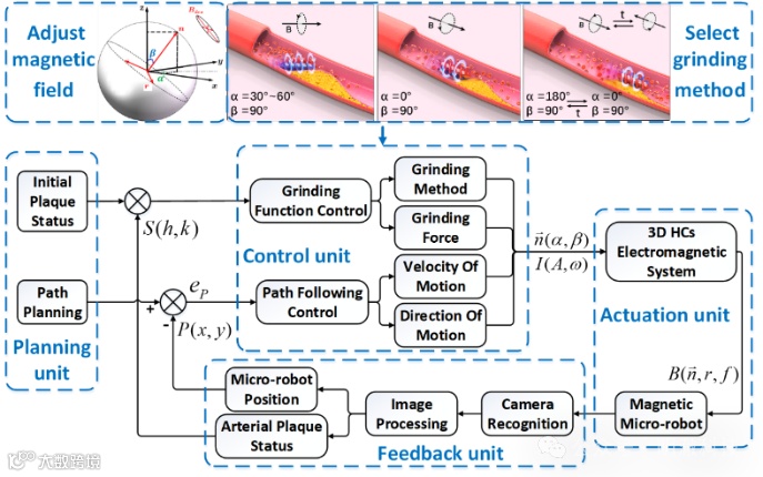 图3 用于去除部分闭塞斑块的闭环微型机器人运动控制示意图。