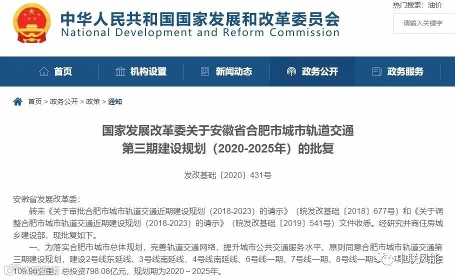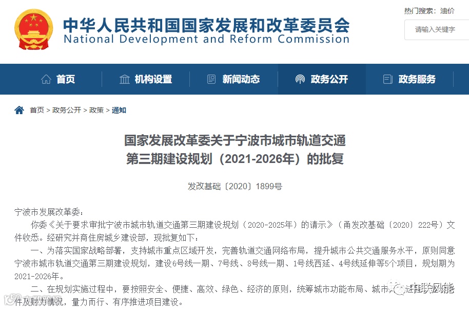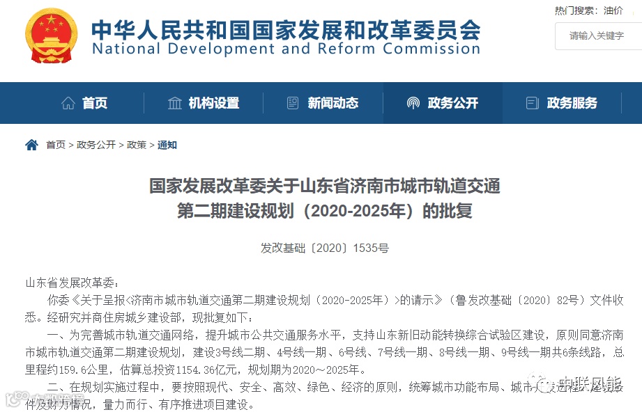 2020年,国家发展改革委批复徐州、合肥、济南、宁波4市的新一轮城市轨道交通建设规划,分别为徐州市城市轨道交通第二期建设规划(2019-2024年)、合肥市城市轨道交通第二期建设规划(2020-2025年)、济南市城市轨道交通第二期建设规划(2020-2025年)和宁波市城市轨道交通第二期建设规划 (2021-2026年)。4市新获批建设规划线路长度共计455.36公里,总投资额共计3364.23亿元。另有4市城市轨道交通建设规划调整方案获批,分别为厦门市城市轨道交通第二期建设规划调整方案( 2016-2022年)、深圳市城市轨道交通第四期建设规划方案调整、福州市城市轨道交通第二期建设规划(2015-2021年)调整方案和南昌市城市轨道交通第二期建设规划方案调整。4市获批调整方案涉及项目新增线路长度共计132.59公里,新增总计划投资额1345.63亿元 。