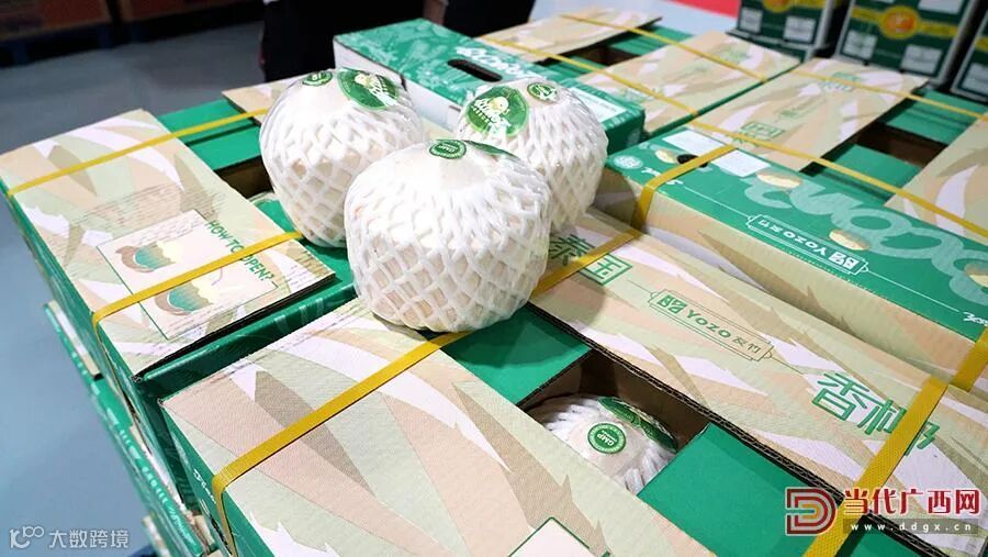 广西供销大集运营中心展示从泰国进口的香椰。记者 石钖 摄