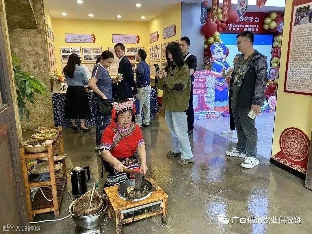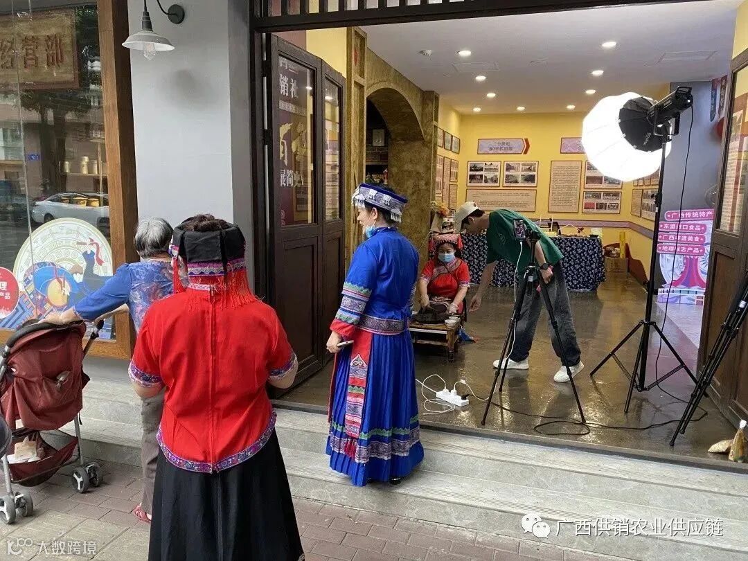 升级后的广西供销社农产品电商运营中心,产品重新规划布局,特别推出广西传统特产、东盟进口食品、广西非遗美食和地理标志产品等新品。活动当天,为更好回馈新老顾客,现场为顾客准备了油茶、灵芝鸡、越南手冲咖啡的试吃。同时开展非遗传承人手打油茶的直播宣传活动和“五一超值购”活动,全场产品满51立减5元。现场热闹非凡,气氛持续高涨,吸引过往人群纷纷驻足。