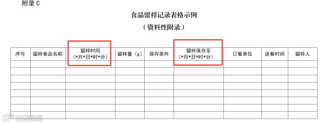 而在规范后面的附录C—食品留样记录表格示例,又精确到“分”。这就出现了前后要求未统一,出现小BUG。
