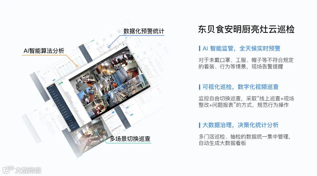 东贝食安始终秉承着“让食安管理更简单”为核心理论,通过建立食安管理体系、督贝APP、智慧门店APP、明厨亮灶+云巡检系统、智慧食安指挥中心、三方巡检等产品落地设计,形成体系化、可执行的食安管理系统,并结合企业及门店的实际情况,提供人员出入管控预警、仓库环境保障预警、火灾风险事前预警、智能AI留样系统、前厅服务交互系统等综合性解决方案,在实现杜绝食安事故出现的同时,并赋能团餐企业及门店,实现降本增效!