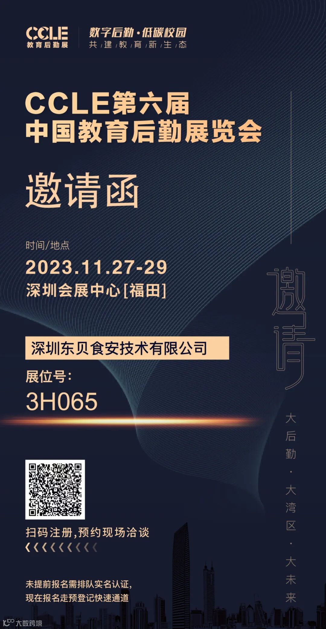 作为全国唯一专注校园管理服务的专业展会,CCLE教育后勤展始终致力于引领教育后勤管理变革,助力校园管理服务升级,助推新时代教育后勤现代化建设,东贝食安作为数字化食安管理服务商,将亮相第六届中国教育后勤展览会。