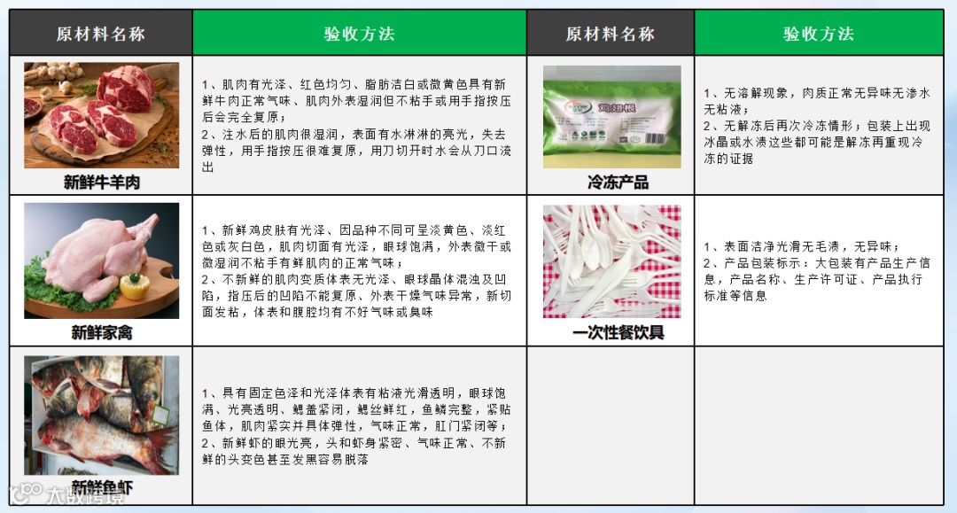 1、信息核对:核对采购大宗食材与购货凭证(或者送货单据)上的名称、数量是否相符。