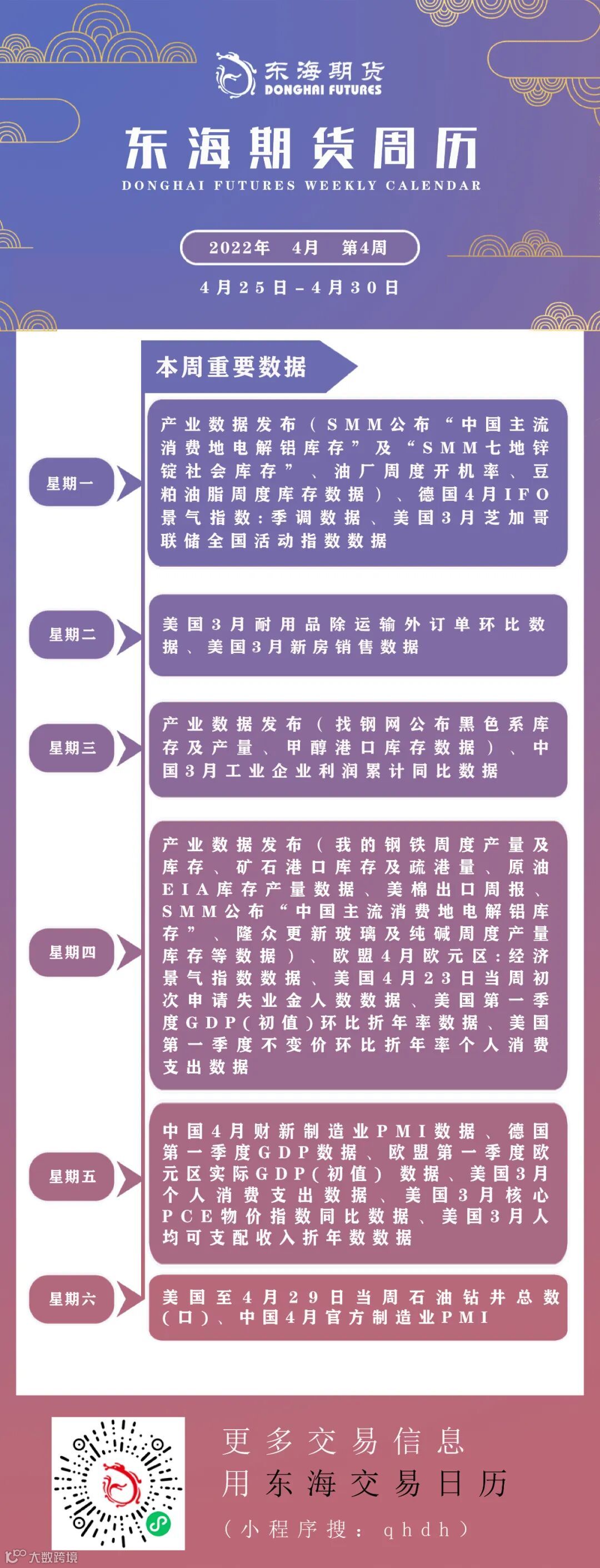 东海期市周历丨本周你需要知道的重要数据(4月25日-4月30日)