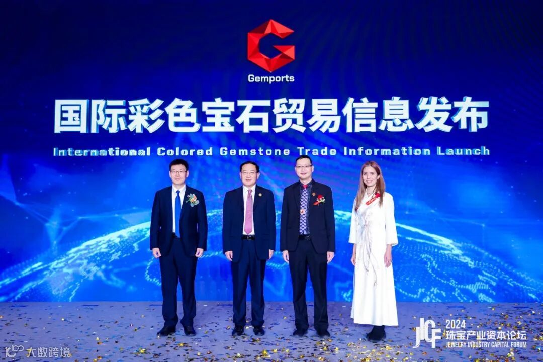 中宝协副会长、秘书长毕立君,珠宝国检集团总经理梁振杰,泰国珠宝首饰行业协会第一副会长黄海东、泰国珠宝首饰行业协会顾问海薇兰共同进行GEMPORTS启动仪式,并由泰国珠宝首饰行业协会第一副会长黄海东发布新一期GEMPORTS国际彩色宝石贸易信息数据。