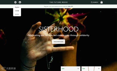 Thefuturerocks网站页面截图,网站提供英语、日语、韩语三类语言选项,显然与周生生零售业务主市场并不相关