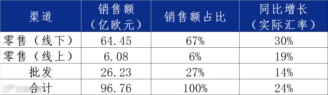表3. 历峰集团2022-2023上半财年各渠道销售额