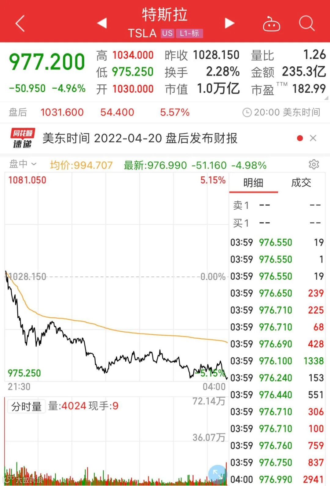 受利好财报影响,在当天跌近5%后,特斯拉股价盘后又涨超5%。