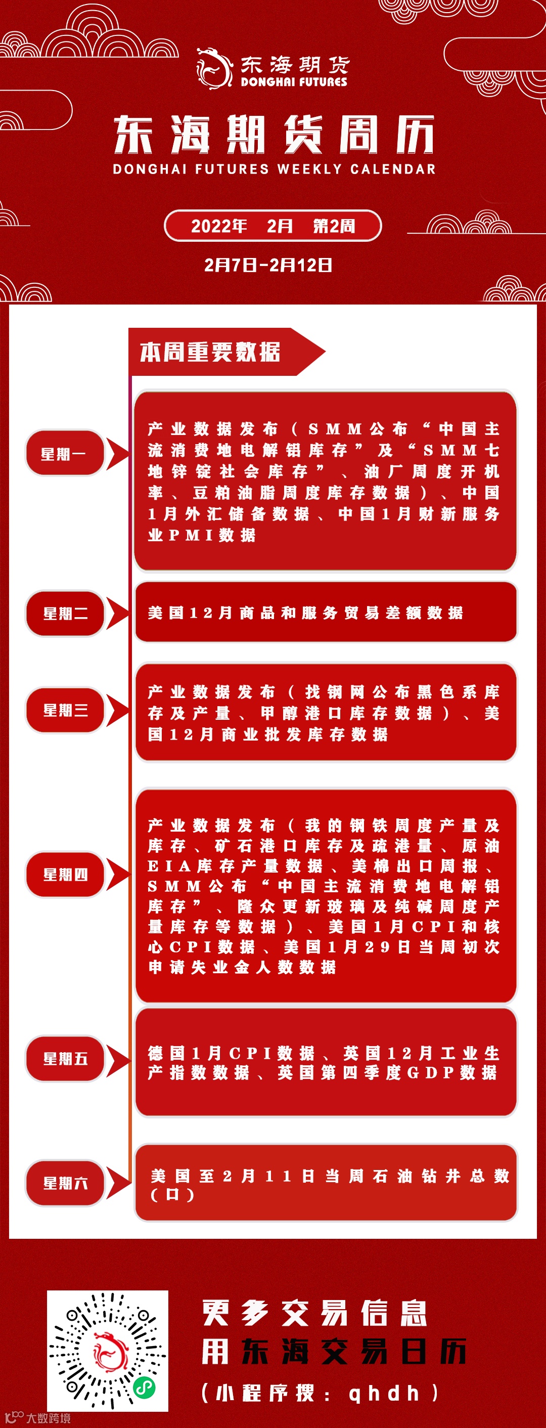 东海期市周历丨本周你需要知道的重要数据(2月7日-2月12日)